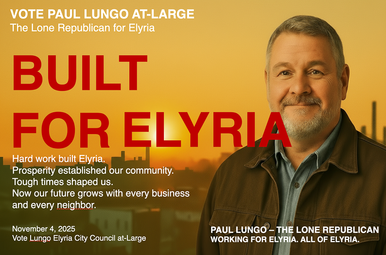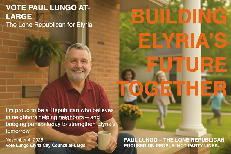 Yes, I am the Lone Republican on the ballot. But I'm not here for just a political party. I’m here for the people of Elyria. All of Elyria.